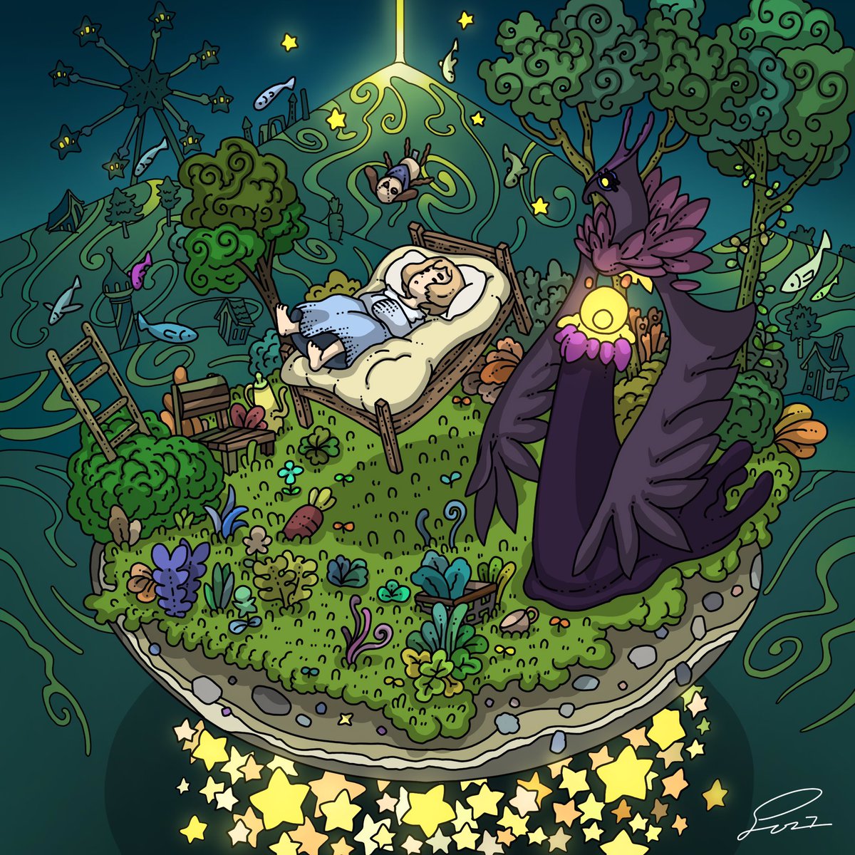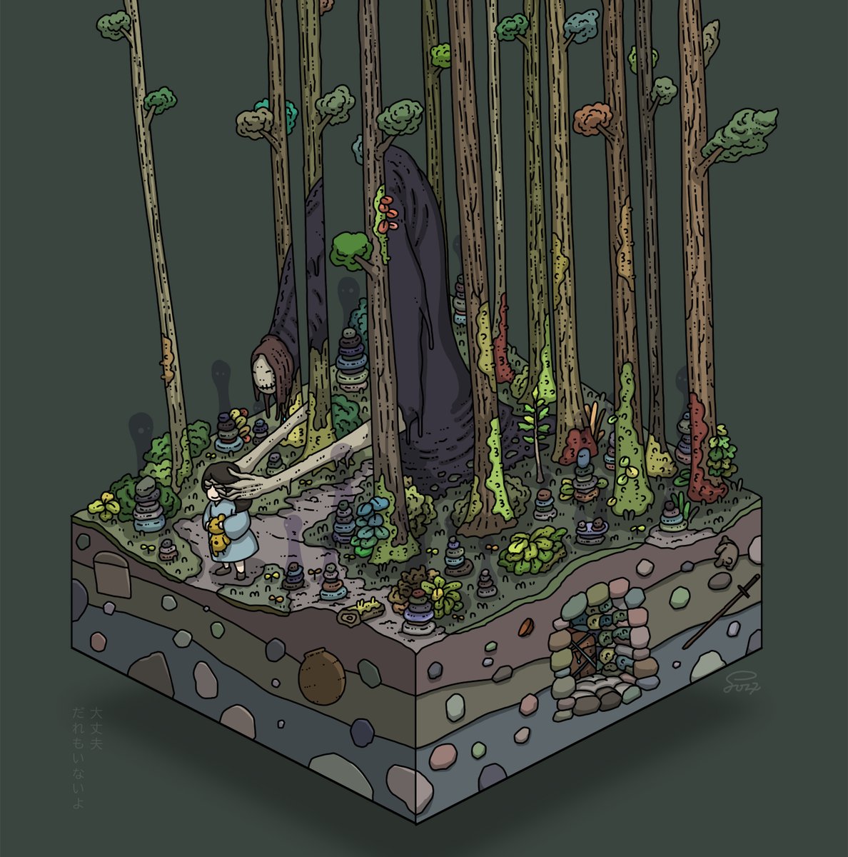 『冥途灯りの行進』を描いてます