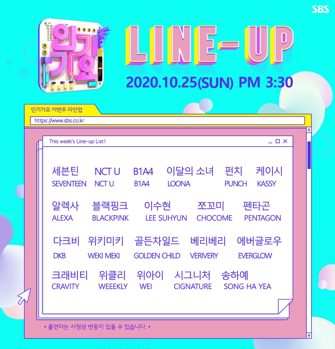이번 주 #인기가요(#inkigayo) Ep.1070 라인업 공개!