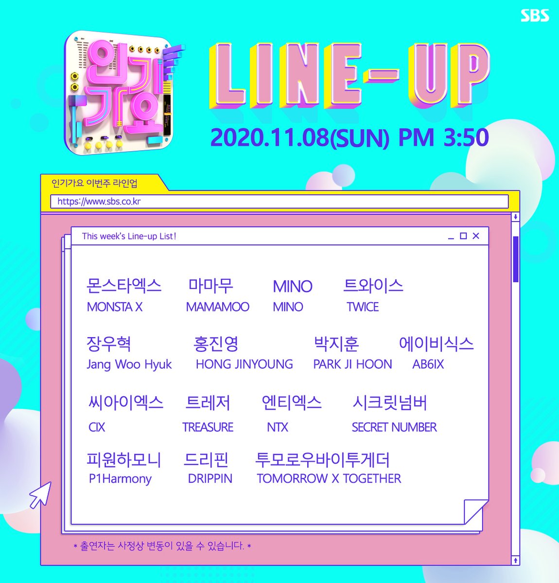 이번 주 #인기가요(#inkigayo) Ep.1069 라인업 공개!