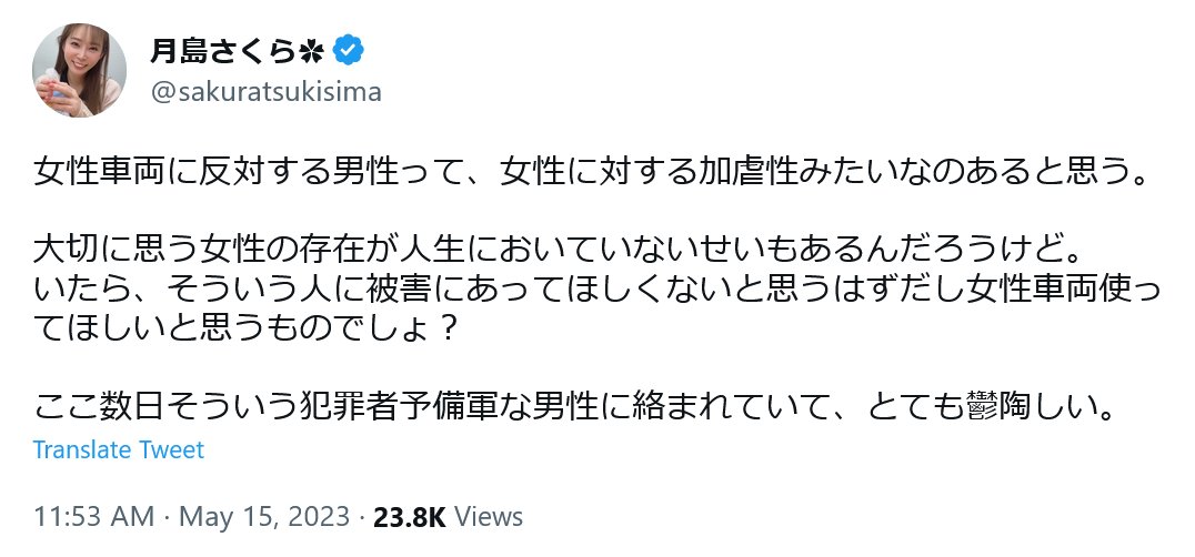 この意見に一点だけ補足させて下さい。赤ん坊の命がロレックスより軽いと判定されるのは母親による子殺しの場合です。父親による子殺しの場合は当然、赤ん坊の命はロレックスより重くなります。この世は相対的原理で成り立っています。赤ん坊の命の重さは絶対ではなく、殺人犯の性別によって変化します twitter.com/iikagenni_siro…