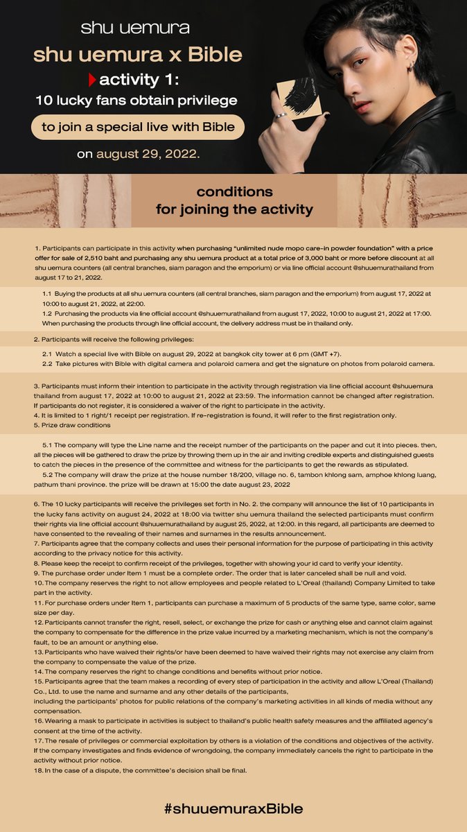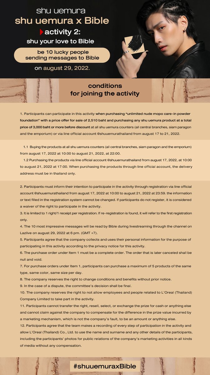 เงื่อนไขการร่วมกิจกรรม shu uemura x Bible 🅱️