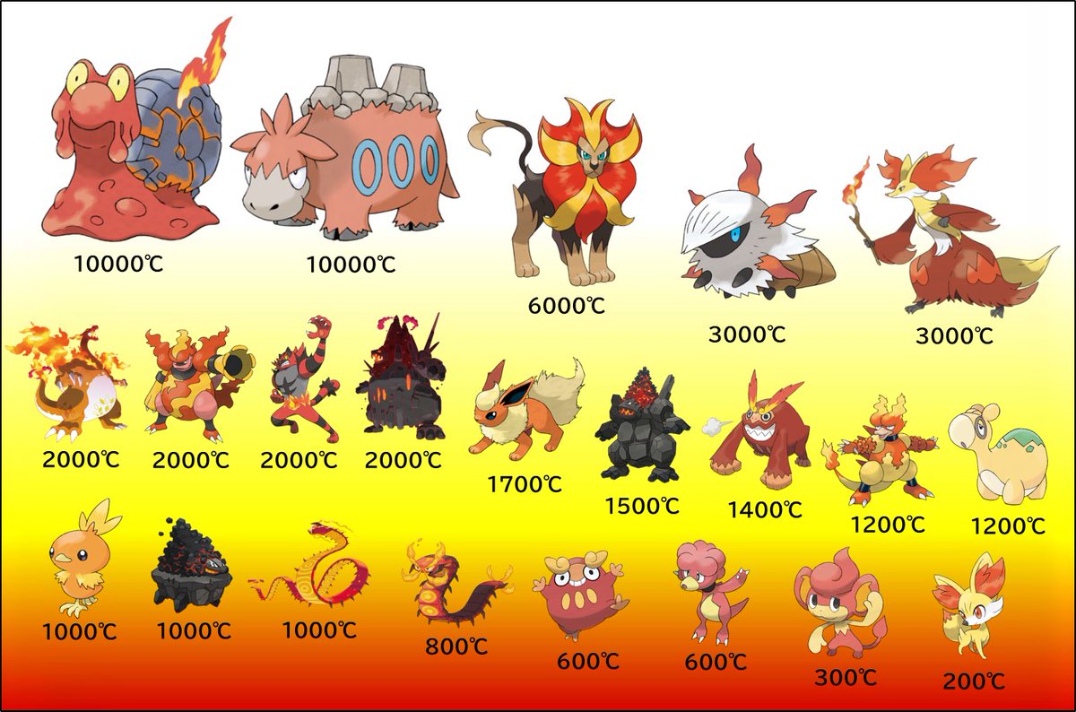 ポケモン図鑑に体温や炎の温度について記述があるものをまとめると、こんな感じになります🔥🔥
