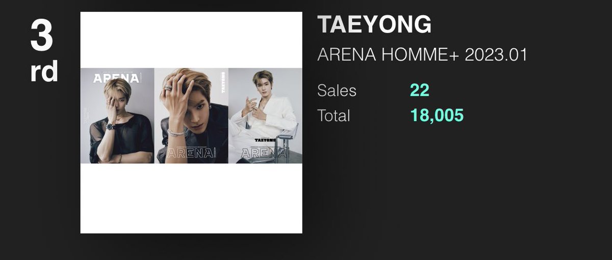 #TAEYONG Arena Homme+ magazine sales has surpassed 18k in ktown4u