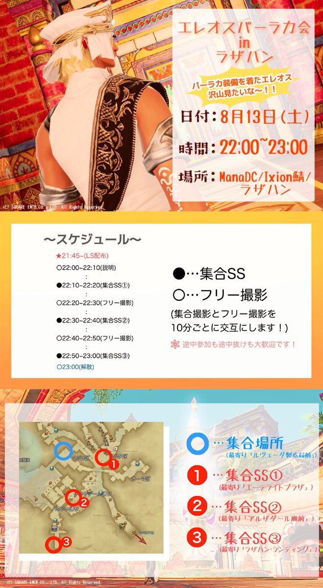 沢山のパーラカエレオスを見たい ‼️パーラカエレオスこの指とーーーーまれ‼️ という事で「エレオスパーラカ会inラザハン」撮影会をしたいと思います! ゆるっとした撮影会ですのでお時間合いましたら是非ご参加ください🙇♂️✨️ 詳細は画像に▼ 質問ありましたらリプ等でお願いします!🙇♂️