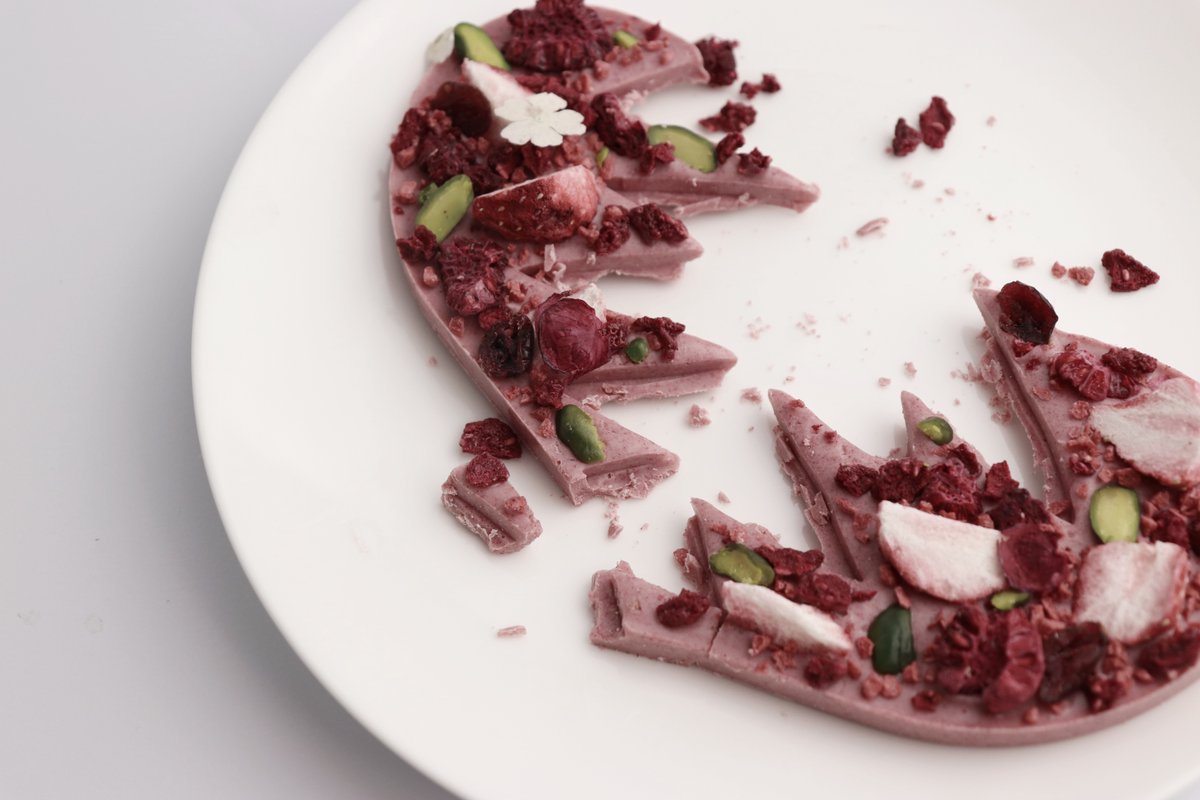 ルビーショコラのガナッシュモンテでピンクの水玉作りました。