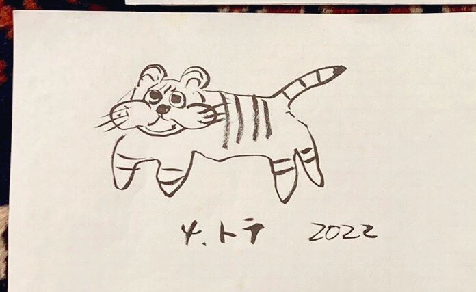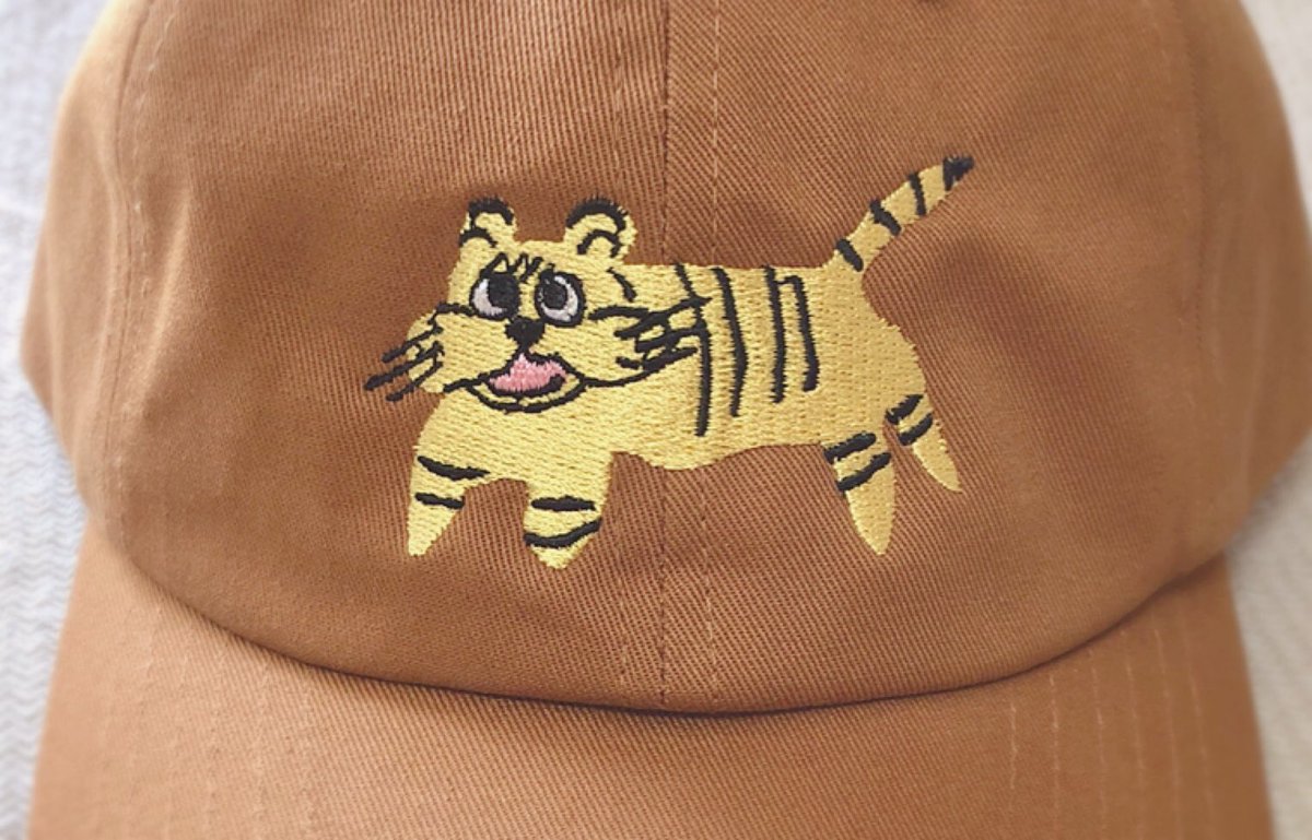 母が描いた虎が良すぎたため帽子に刺繍したら最高になった