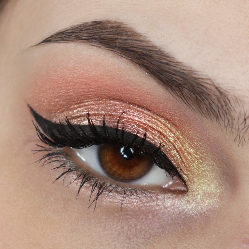 ピンクから爽やかな緑へと鮮やかに偏光するアイシャドウ。