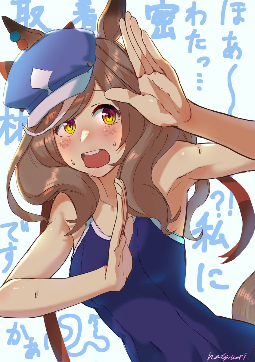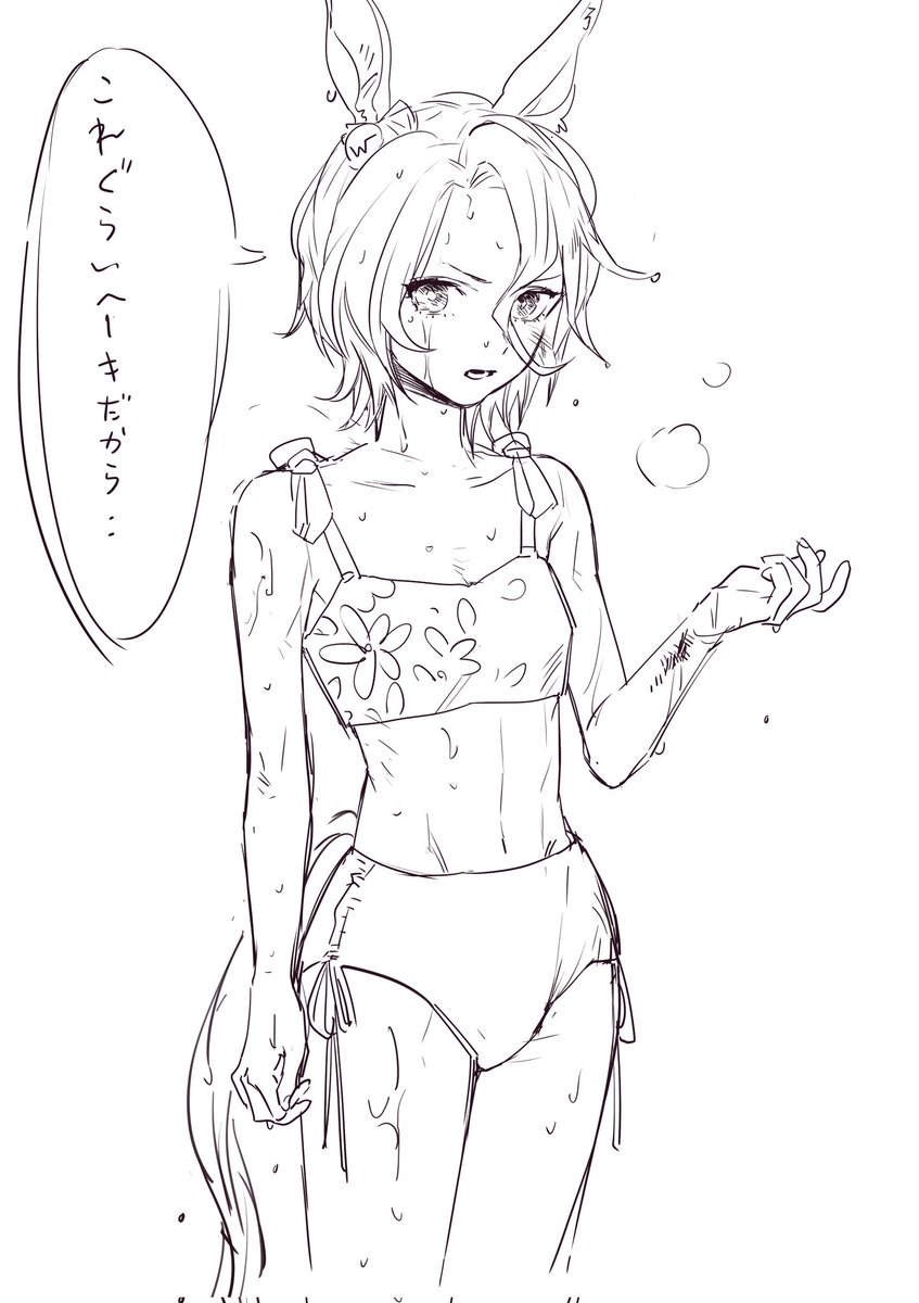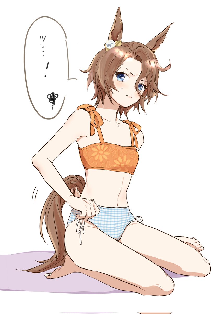 なつのりの妻作「しっぽを頑張って水着から出すタイシン」 妻に描いてもらいました。アカウント主の絵ではありません。