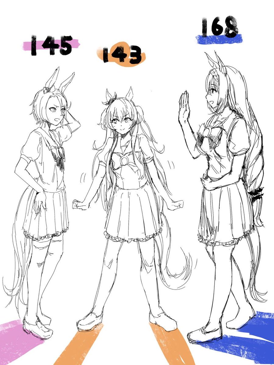 最近描いてる子達の身長まとめ絵