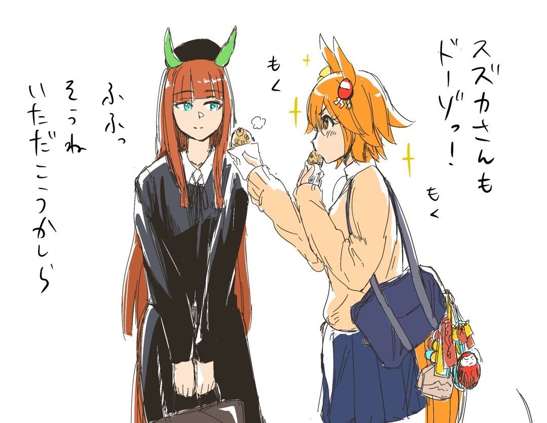 妻絵。(アカ主絵ではない。) 前回の絵の続き。 スーパークリークに無理矢理手当された後、ヤドカリを見つけ、一緒に見るナリタタイシン
