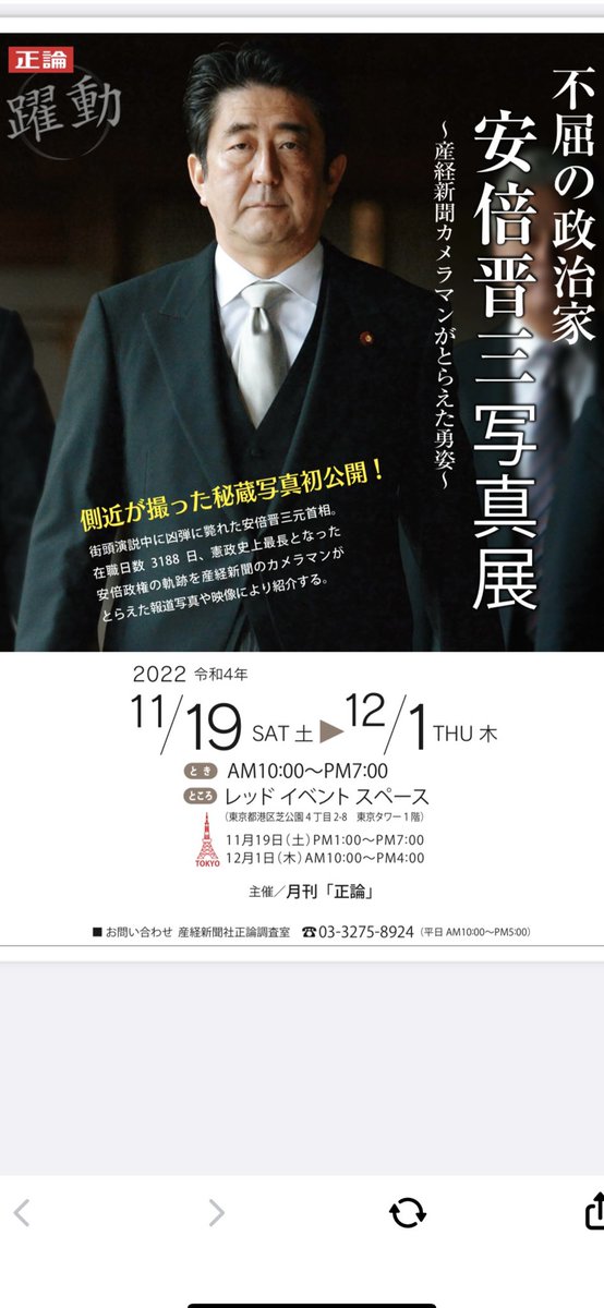 生き生きした表情で仕事をされていた安倍晋三元総理を見習って、これからもブレずに頑張ってまいります(ブログより)