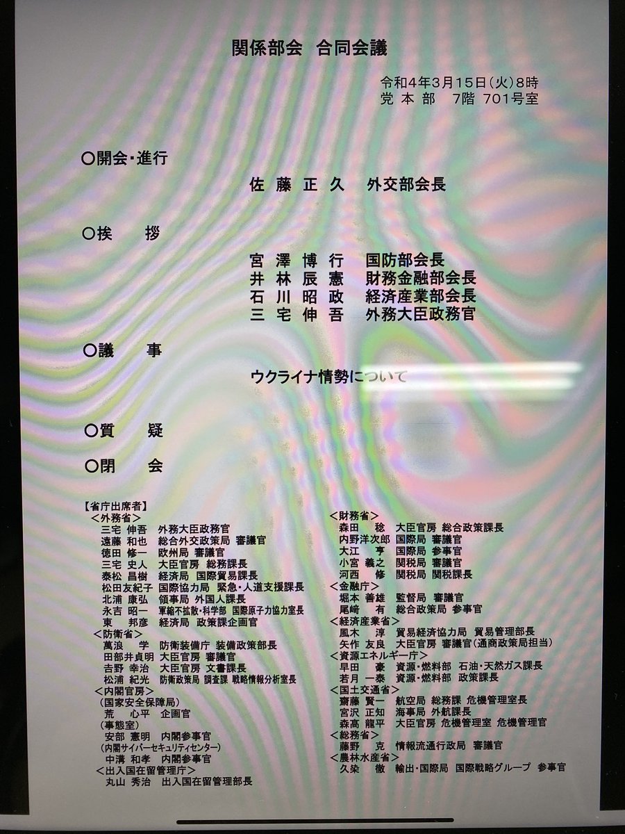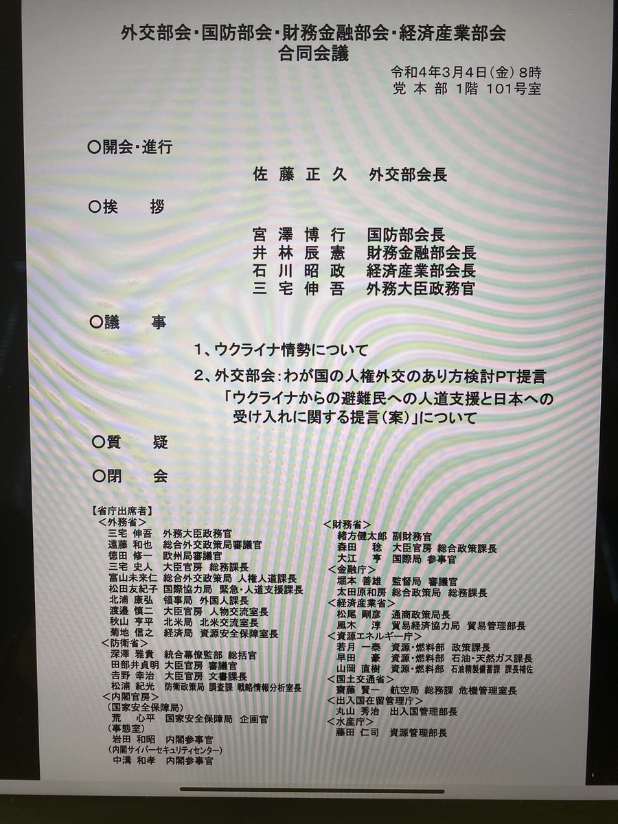 国防部会・安全保障調査会 合同会議。