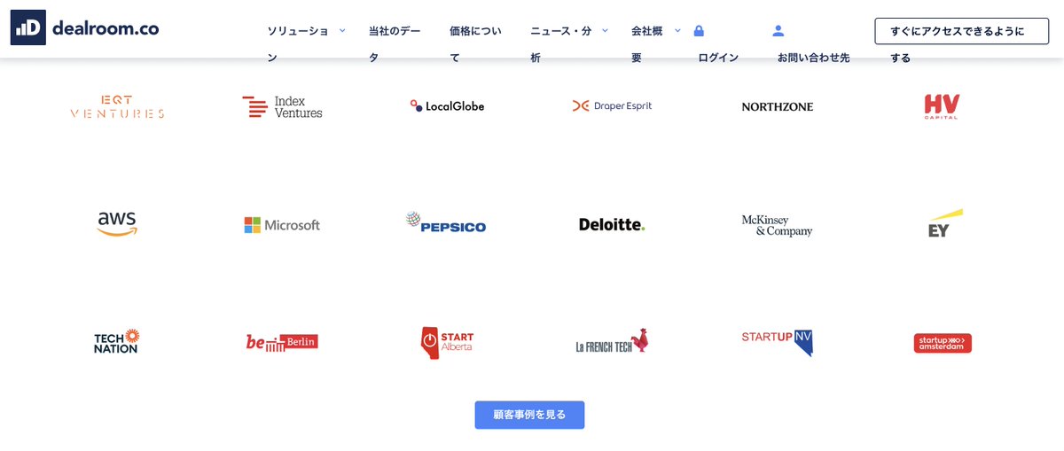 資金調達データ、評価額、サイト訪問者数、従業員数、業績まで見れる。