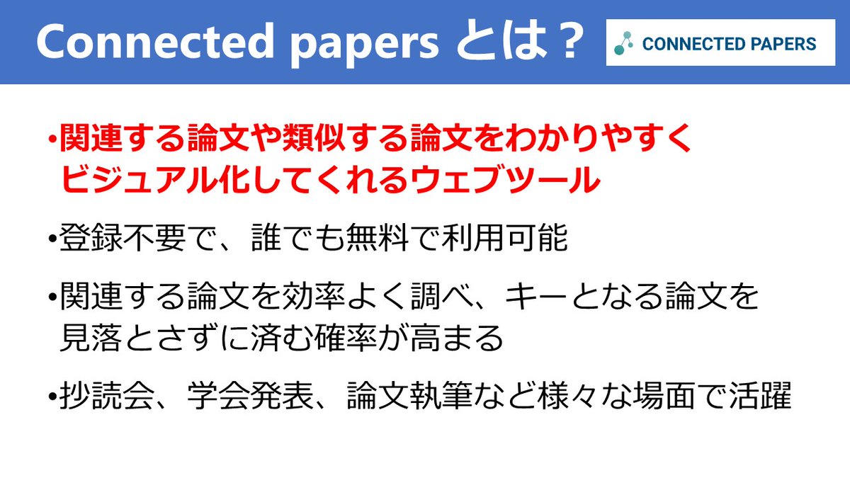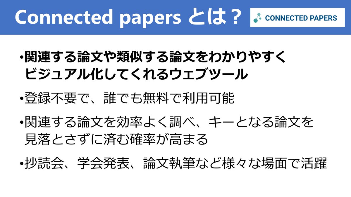 文献レビューで何か良い論文を見つけた時、関連する論文や類似する論文を効率よく検索するのに便利なのが「Connected papers」というウェブツール。