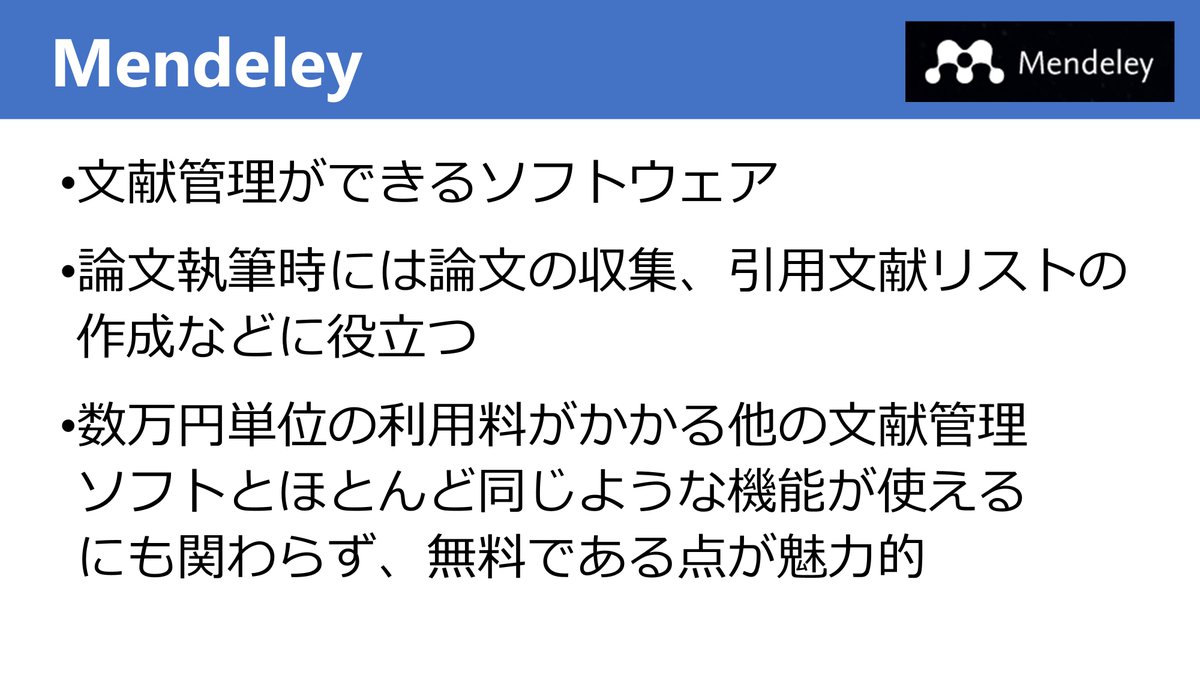 そこで、無料の文献管理ソフトでおすすめなのがMendeley。有料ソフトとほとんど遜色ない機能が使えます。