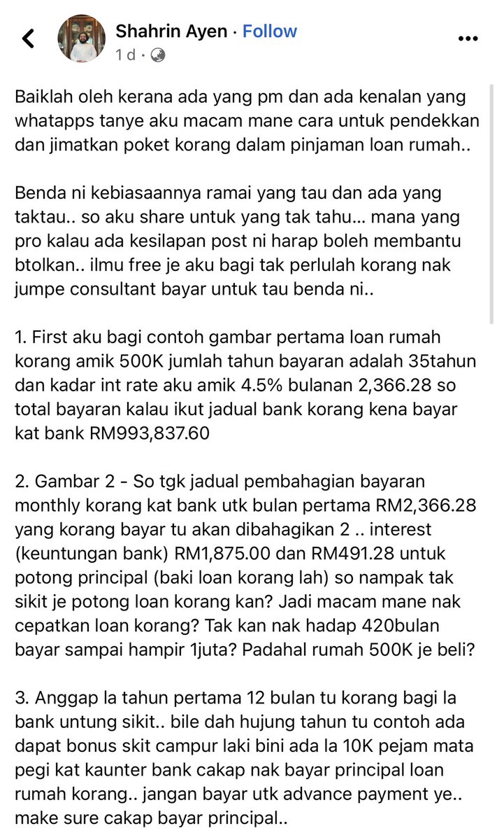 Ada tips sedap bayar loan rumah dekat FB. Aku tepek link dekat reply.