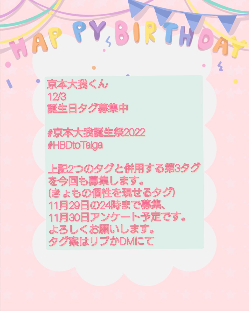 12/3 誕生日タグ募集します。