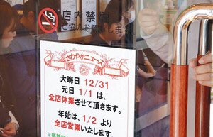 例えば、「炭焼きレストランさわやか」を展開するさわやか(浜松市中区)は、全三十三店で大みそかと元日は休業します。