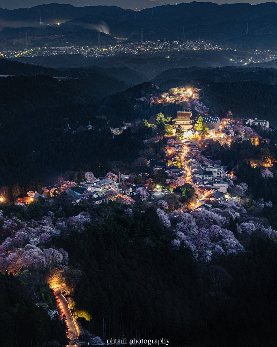 春の闇夜に浮かび上がる吉野の絶景