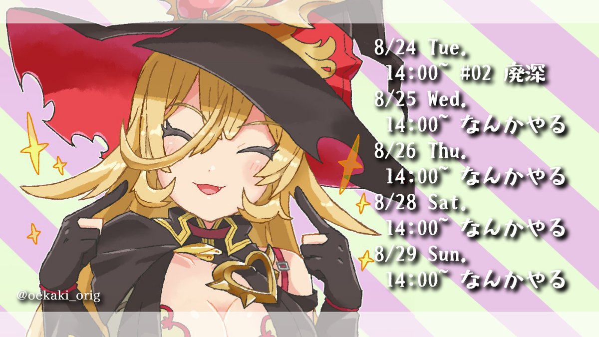 今週の予定…!!なんとレバガチャダイパンステージ出演だけじゃなく久々のソロ歌動画(フル)があがるぞおおお!!!盛りだくさんな一週間よろしくぅ!!!!!