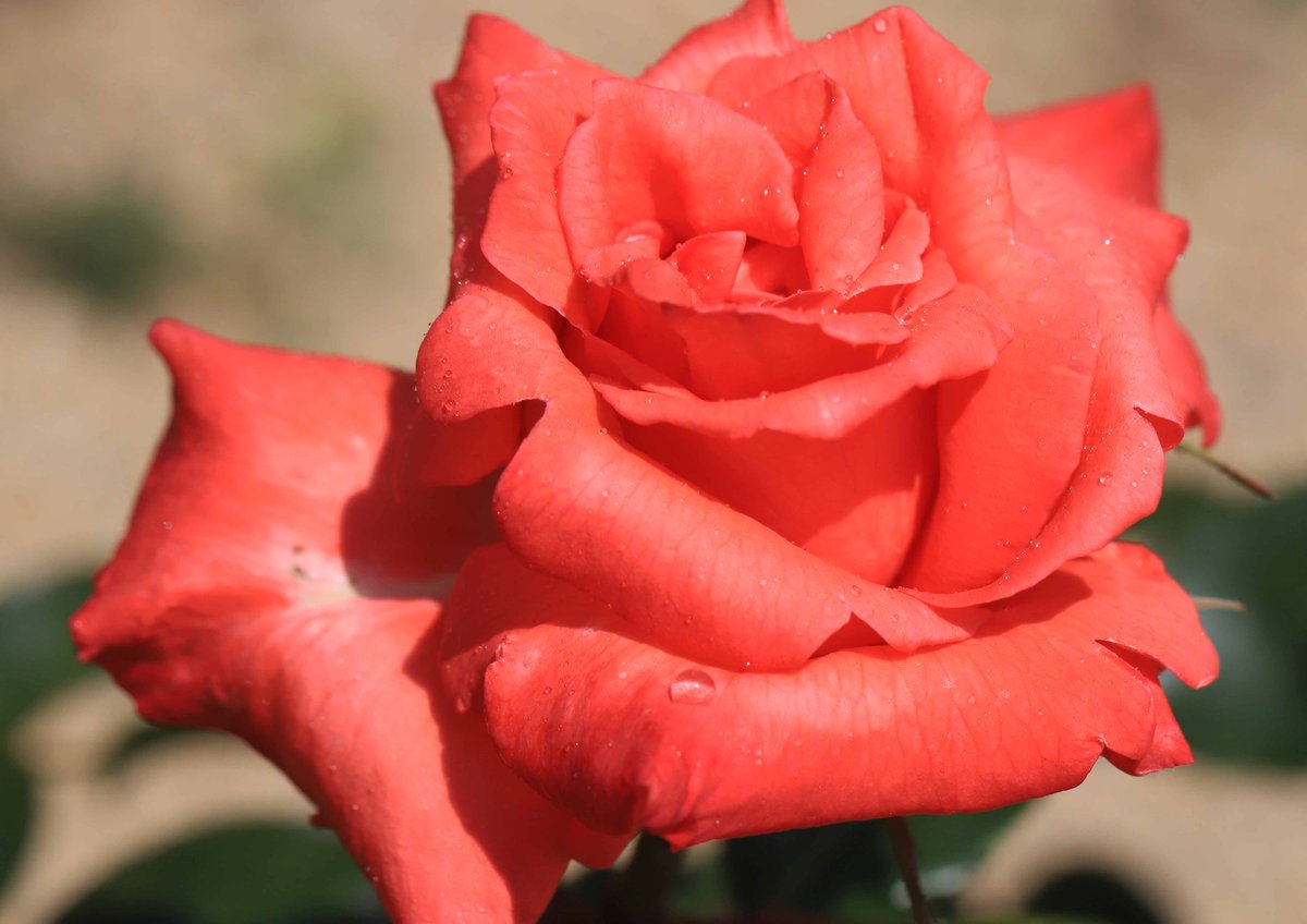 教会の花壇に咲いた朱色の薔薇。その名も「アヴェ・マリア」です(^^)