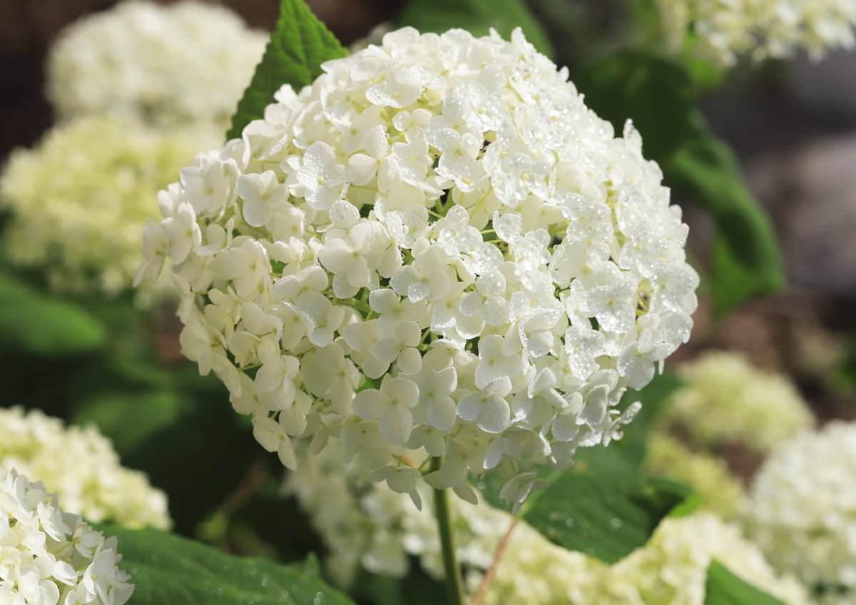 教会の花壇に咲いた西洋アジサイの「アナベル」。初めは緑色ですが、一雨ごとに白くなっていきます。これも「色づく」ということになるのでしょうか(^^)