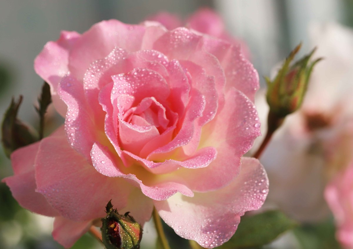 教会の花壇に咲いた、上品なピンク色の薔薇「プリンセス・ド・モナコ」。心を癒してくれる美しさです(^^)