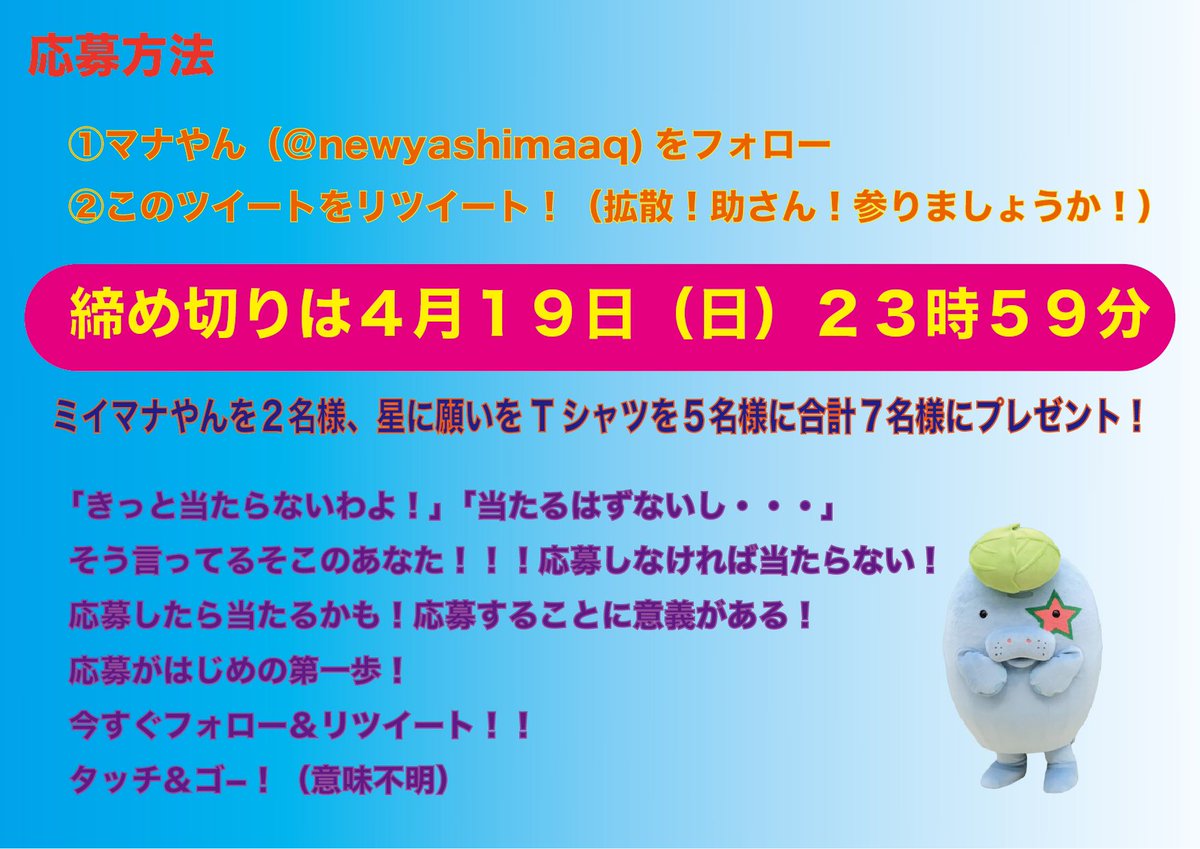 ミニマナやん&Tシャツセットが当たる!