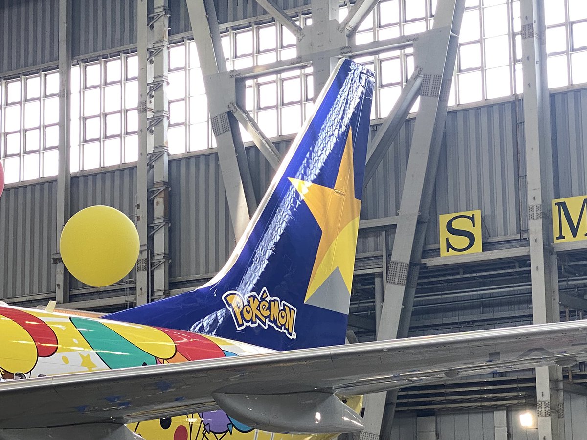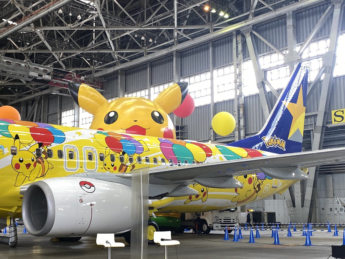 スカイマークのポケモン特別塗装機「ピカチュウジェットBC」。羽田空港格納庫でピカチュウ10匹がHYのテーマソングと共に踊った動画が既に2万回再生を超えてますが、歌の最後の部分の動画も是非ご覧ください。10匹のピカチュウの見事なダンスパフォーマンスでした。