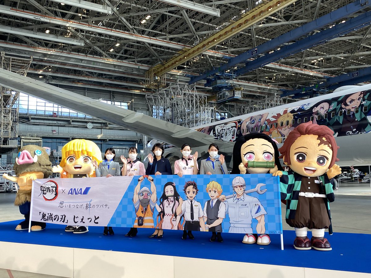 ANA「鬼滅の刃」じぇっと-壱- のお披露目会には、炭治郎・禰豆子・善逸・伊之助もANAの客室乗務員にアテンドされて登場し、イベントを盛り上げました。入場シーンの動画です。