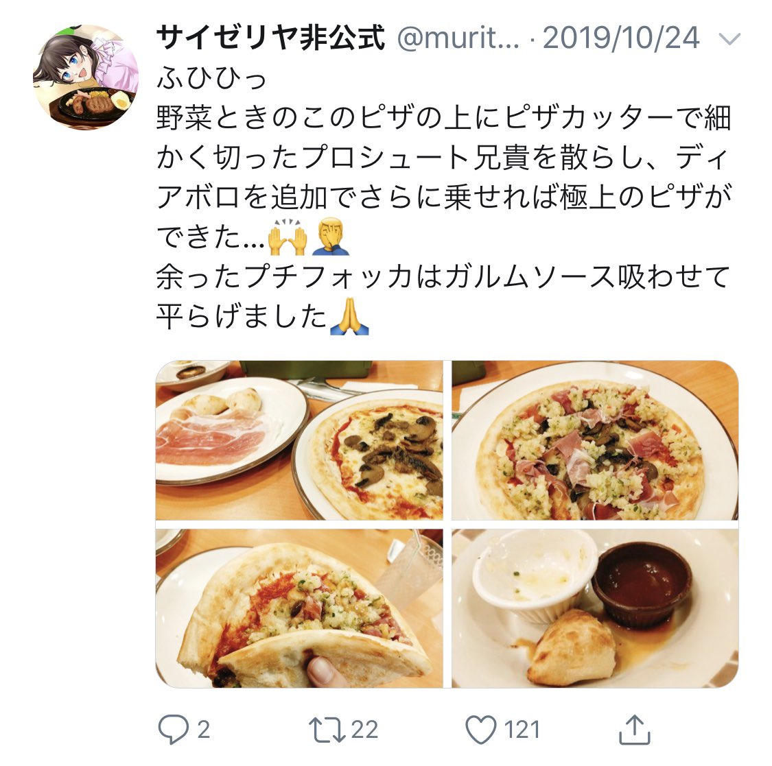 最近フォローしたサイゼリヤ非公式 @muritotoi さん、サイゼリヤに行きたくてしょうがなくなるポジティブな圧があって大好き