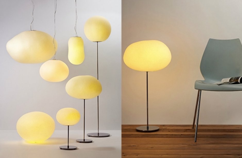 これは月がぽっかり浮かんでるよな立体和紙のライト。継ぎ目も構造の骨組みもなく樹脂で固めてない自然素材のシンプルなまんまるライトはどこにでもありそうでなく、和紙の風合いが光に照らされると月面のよう