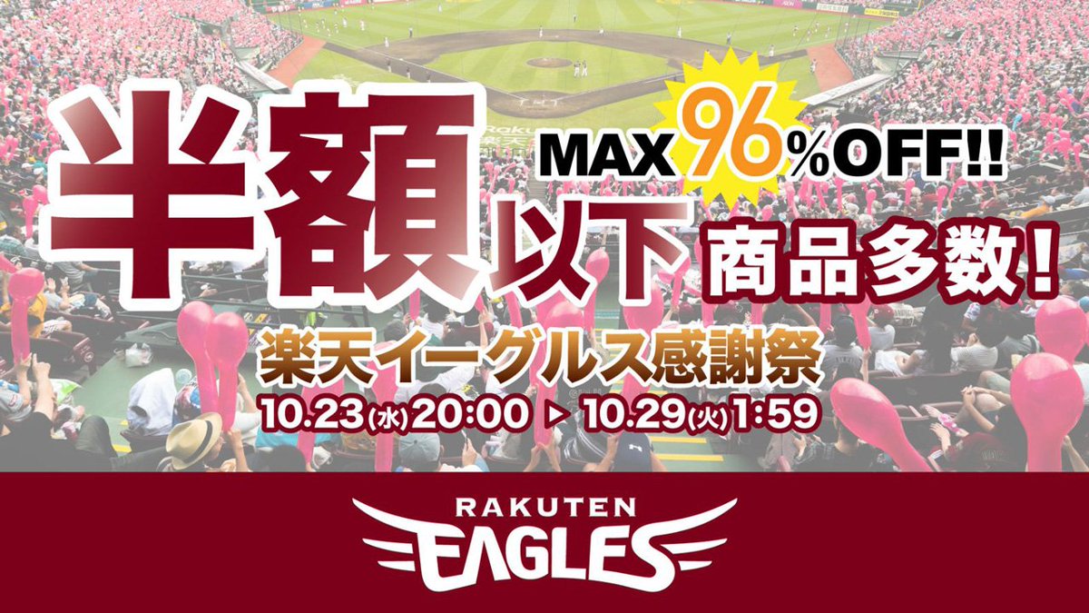 本日10/23(水)20:00~オンラインショップで楽天イーグルス感謝祭を開催します。セール対象はなんと1,000商品以上!半額以下の商品も多数!