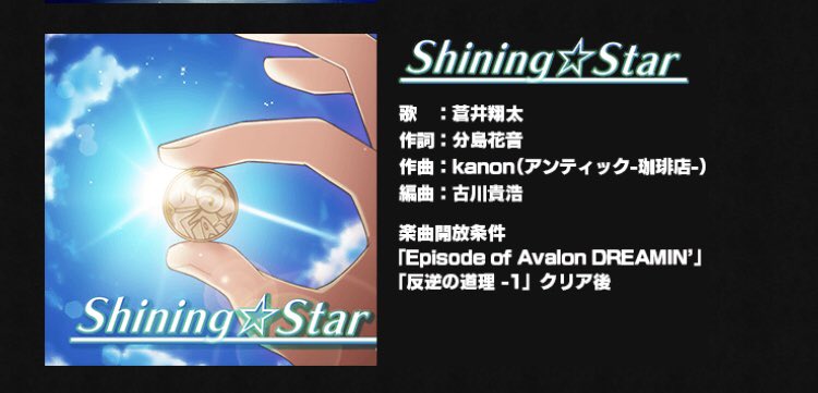 5月15日(火) 17:00より追加となる、2部最終章「Episode of Avalon DREAMIN'」のFairy April楽曲『Shining☆Star』作曲させて頂きました。宜しくお願いします。