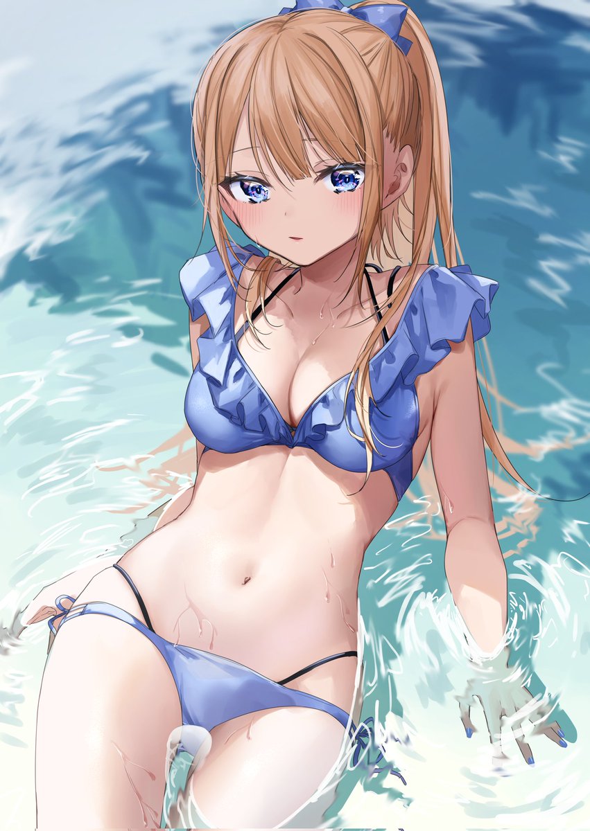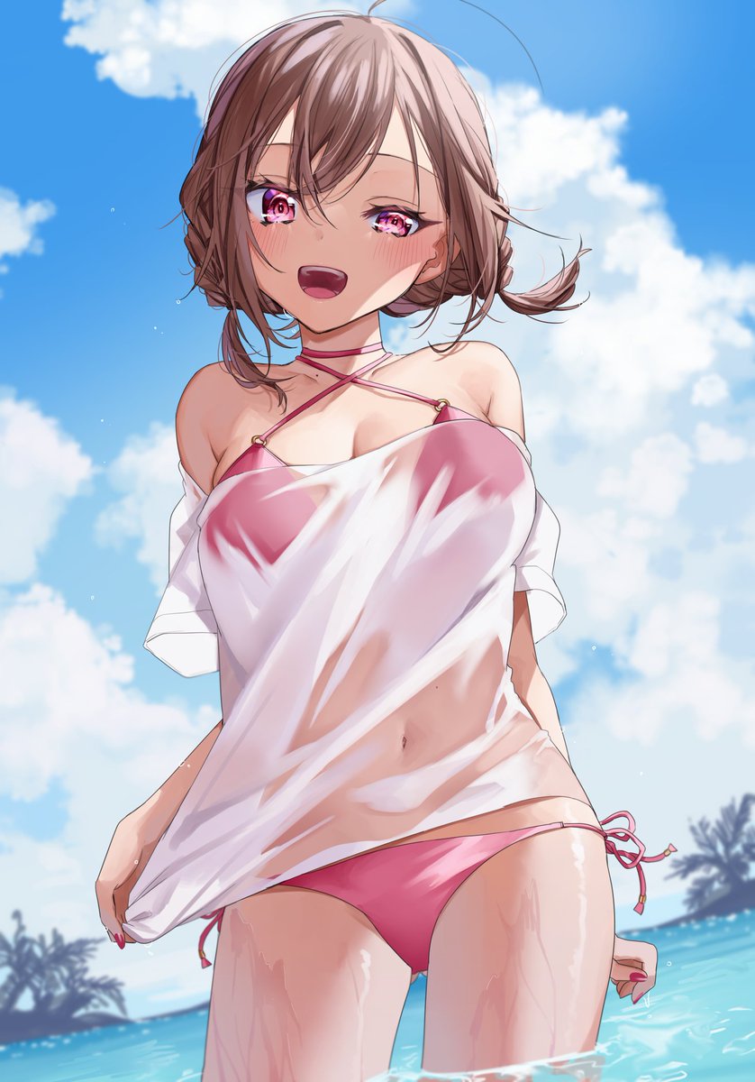 布面積多めの水着選んだけどやっぱり恥ずかしい女の子