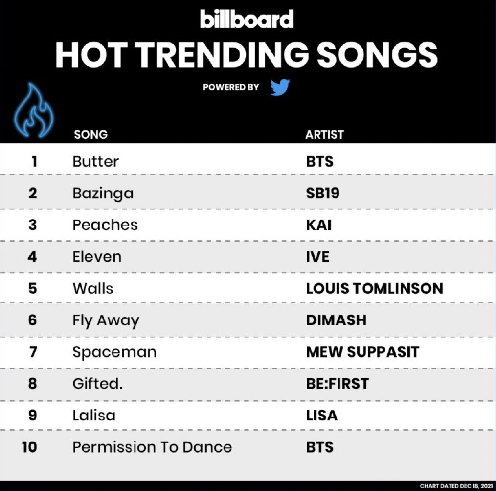 .@BTS_twt’s “Butter” returns for a 6th week at #1 on Billboard’s Hot Trending Songs chart!