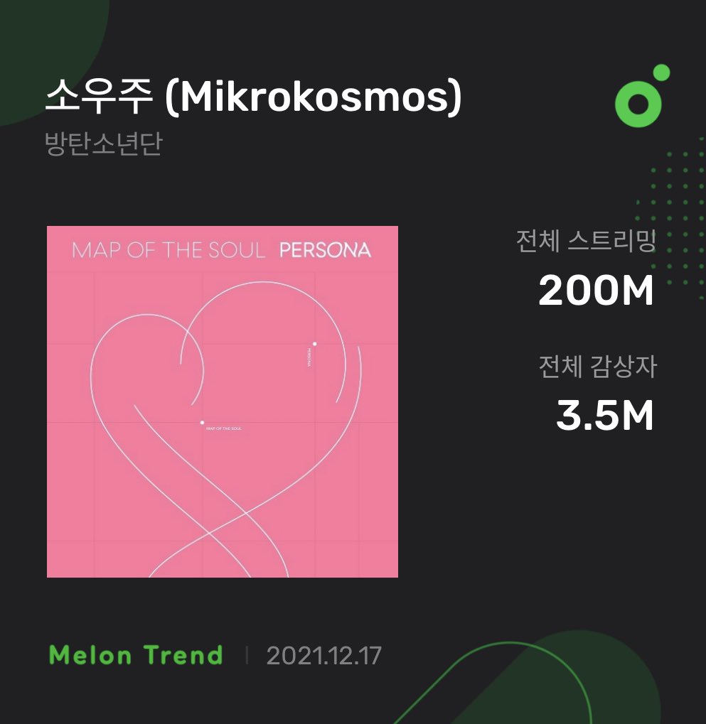 .@BTS_twt’s “Mikrokosmos” has surpassed 200 million streams on Melon 🇰🇷