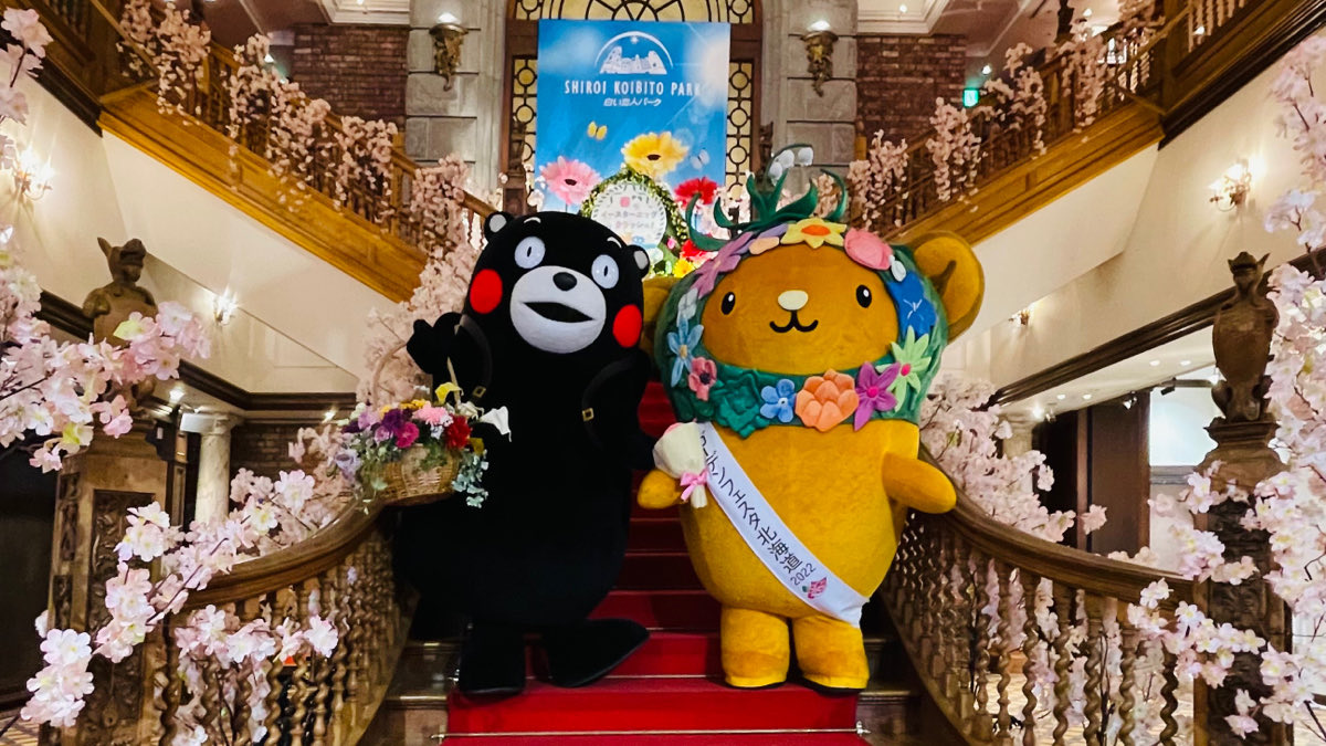 北海道観光PRキャラクターのキュンちゃんとくまモンが楽しく見学✨