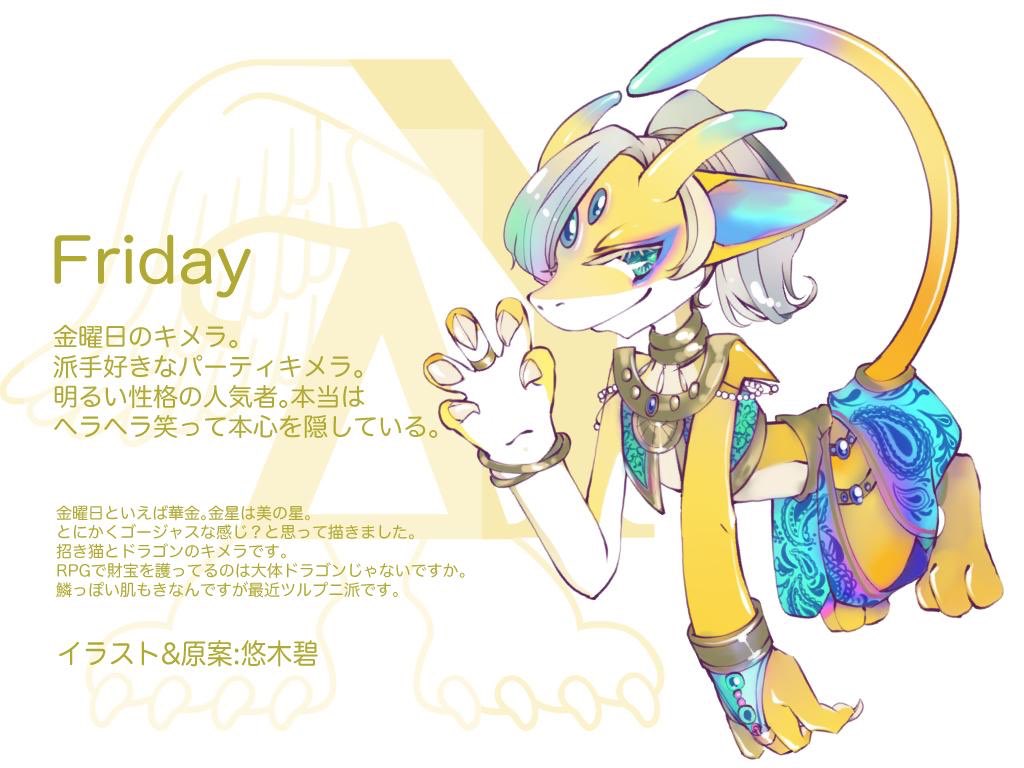 7月から応援して頂きました、ツイッター限定曜日キメラ、遂に7体出揃いました🐾アニメ情報解禁まで、悠木さんワールドに触れて貰えたらなと更新してきましたが、お楽しみ頂けたでしょうか?アニメのキャラもとても可愛いので早くお披露目したいです🐾❤引き続き #キメプロ をよろしくお願いします! twitter.com/yukiaoi_chimer…