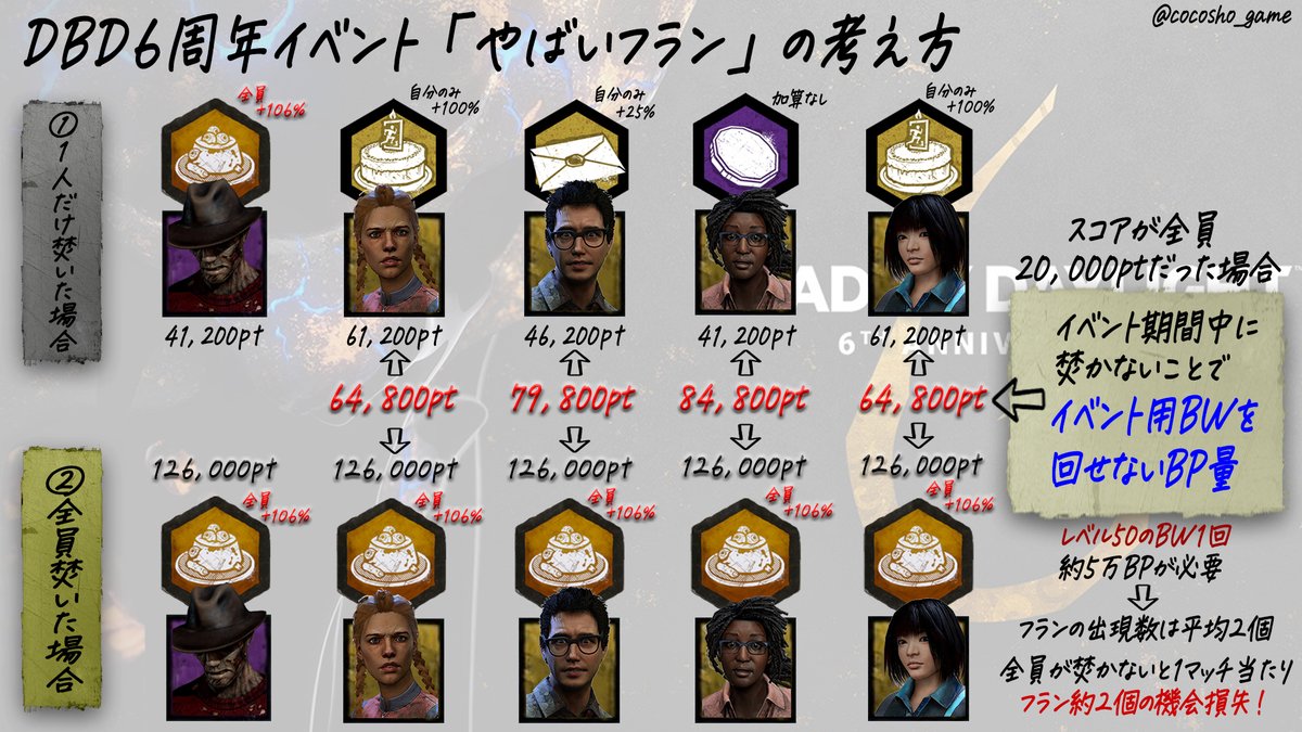 「レベル50のBW1回あたりのフラン平均2個」について、体感ベースでなく具体的な実績値で示していただいたようです。貴重なデータ。やはりフランは全員でぶん回した方が貯まる。 twitter.com/dbd_kamigame/s…