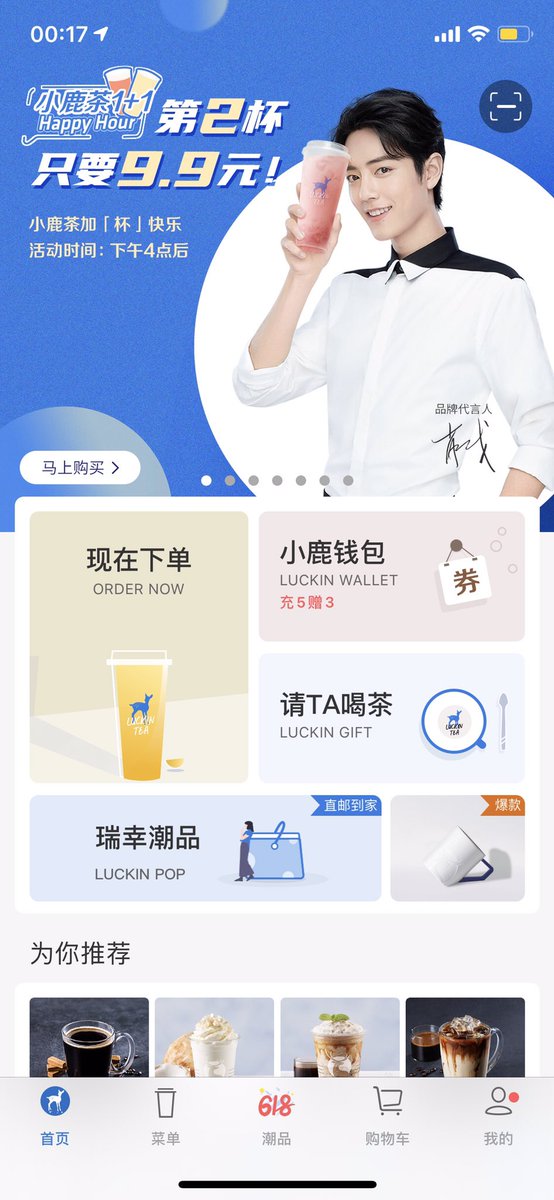 เซียวจ้านกับADโปรโมชั่นตัวใหม่ในLuckintea App