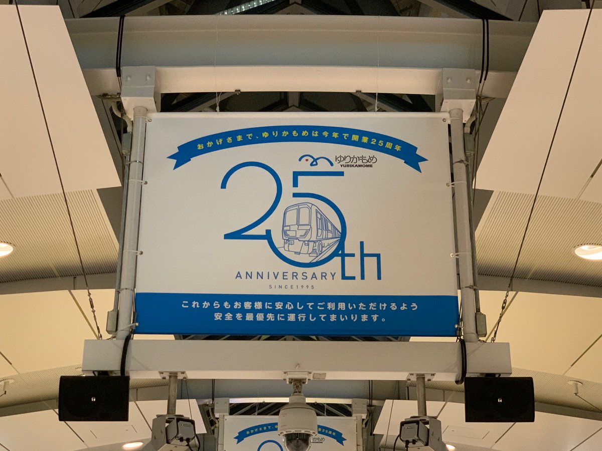 ゆりかもめは11月1日に開業25周年を迎えます✨25周年を記念して、お客様への感謝をお伝えするため、本日より記念ヘッドマーク付き車両が2編成運行いたします🚄また、10月19日より新橋駅ホーム階にフラッグを掲出予定です♪11月15日まで展開いたしますので是非ご覧ください!