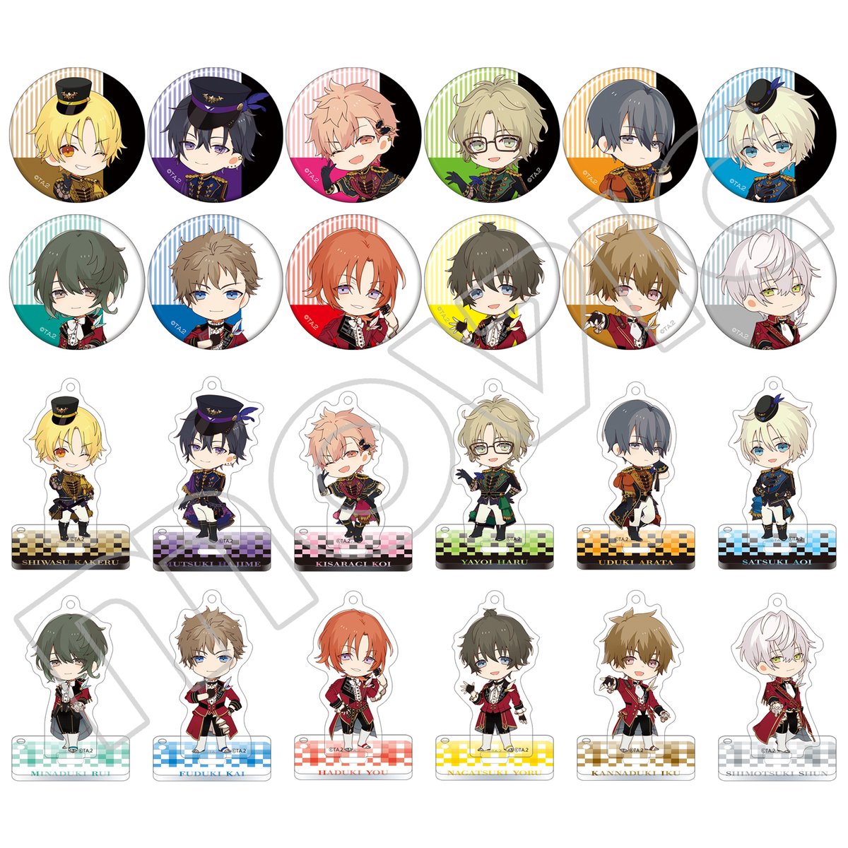 【ツキウタ。 THE ANIMATION 2】キャラバッジコレクション、スタンド付きアクリルキーホルダーコレクション、各ユニットリーダー描き下ろしイラストを使用した商品が登場!