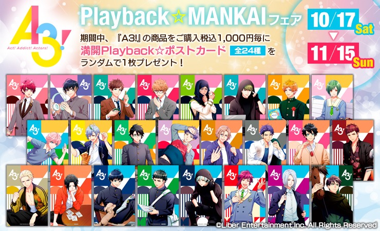 【フェア告知】『A3!』Playback☆MANKAIフェア開催決定!開催期間は10月17日(土)~11月15日(日)まで!お見逃しなく!movic.jp/shop/r/r100419… #エースリー