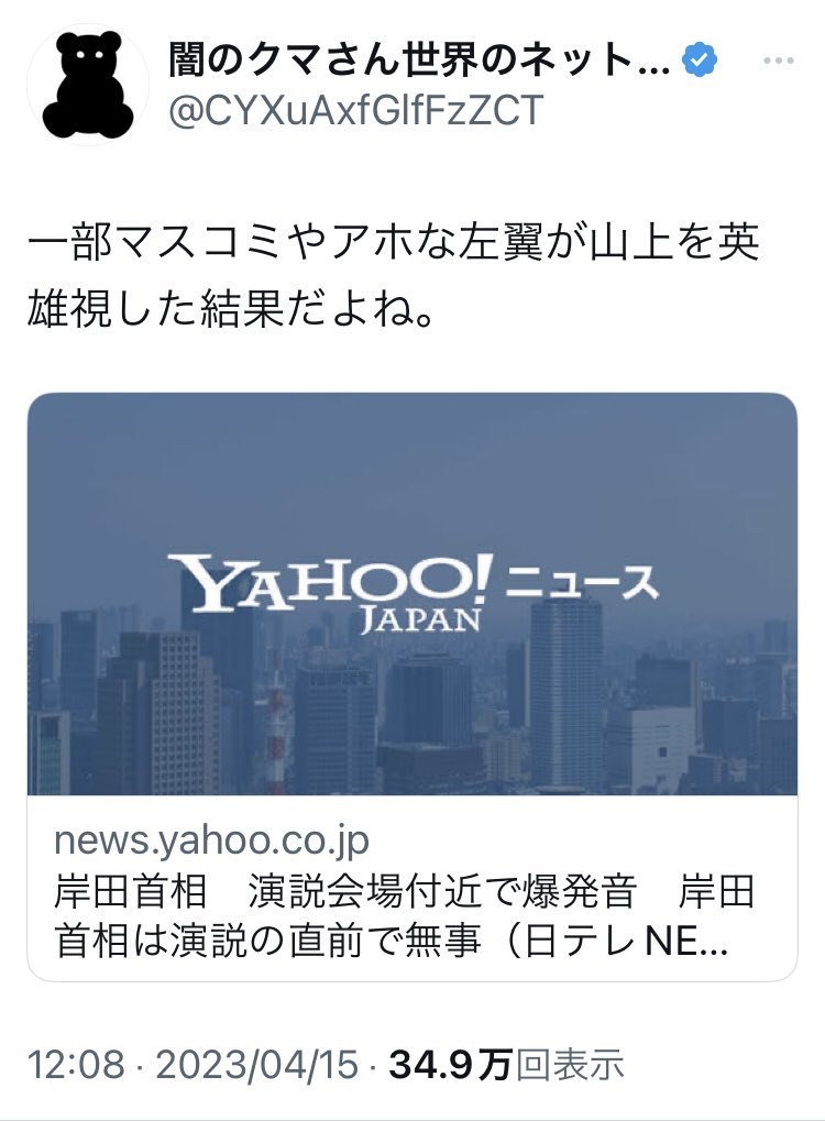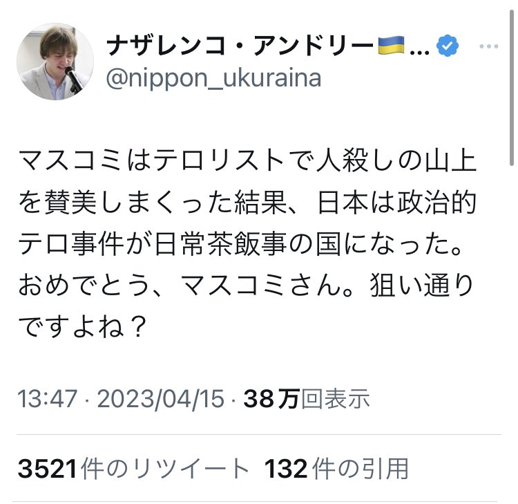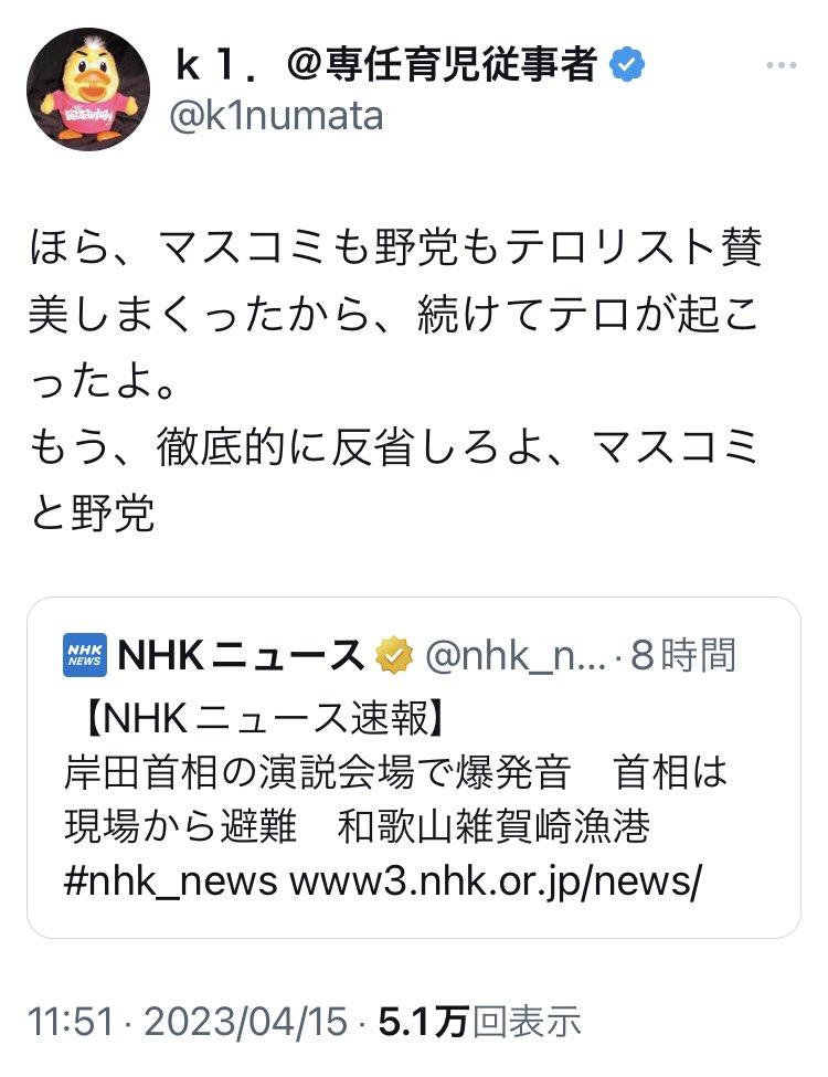 もし安倍元首相銃撃事件後にマスコミが犯人の動機や事件の背景を報道しなかったしたら、犯行は左翼のテロだったということになっていただろう。そして統一教会と政治家の関係も表に出ることはなかった。今、岸田総理の爆破事件をマスコミは報道するなと言っている人は、真実を隠したい人なのか。
