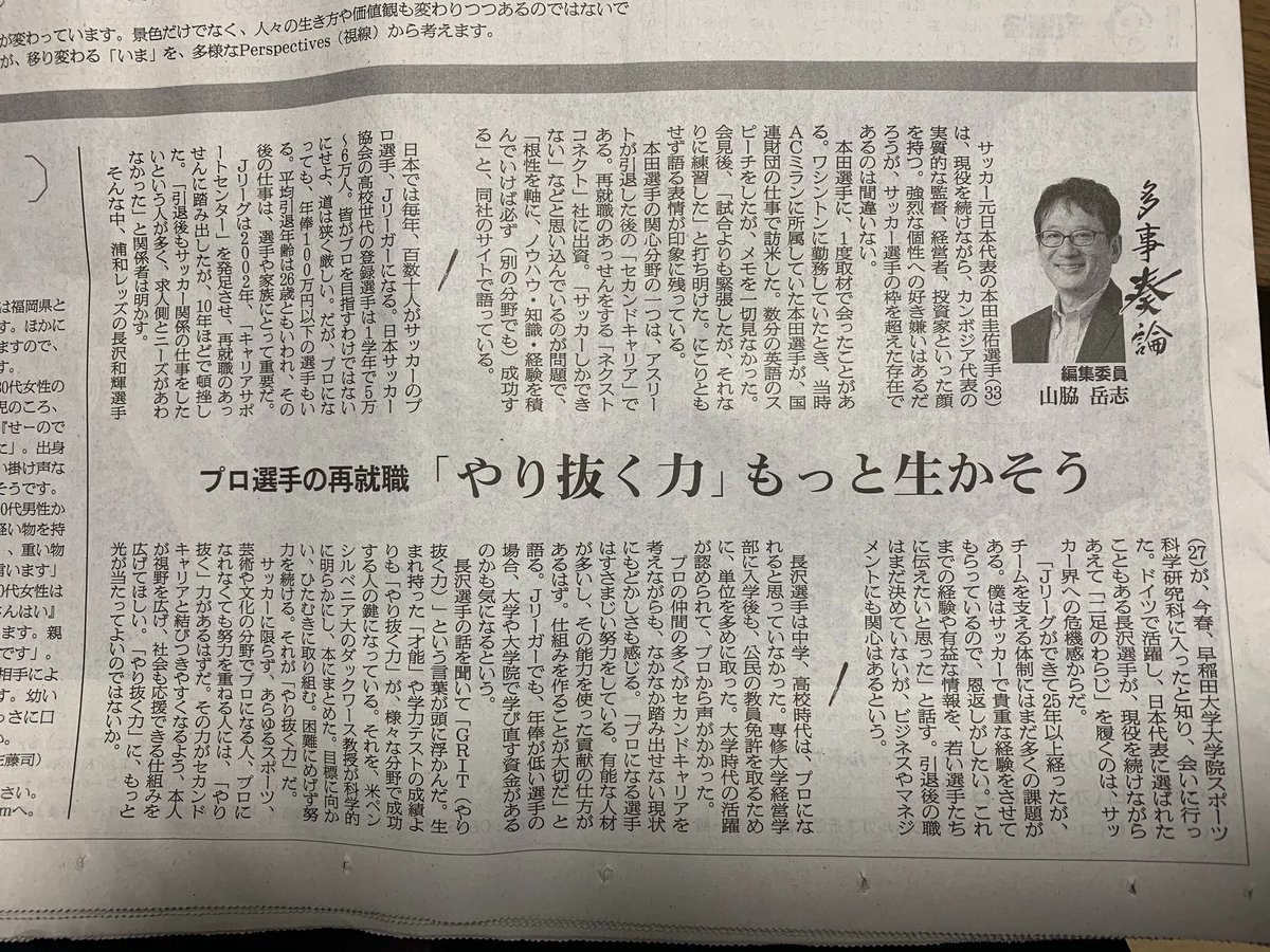 ちなみに長沢なのは’澤’が旧字で新聞で使えないからとのこと。#多事奏論