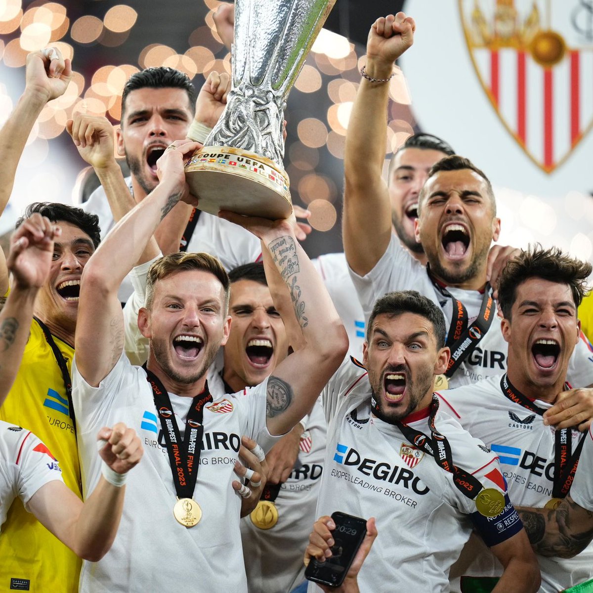 🏆 El #SevillaFC ofrecerá la séptima @EuropaLeague este jueves a sus aficionados tras aterrizar desde Budapest.