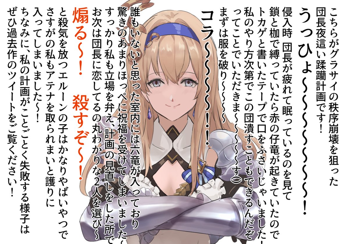 夜這いを仕掛け団長ガチ勢を発狂させようと企むエニュオ.