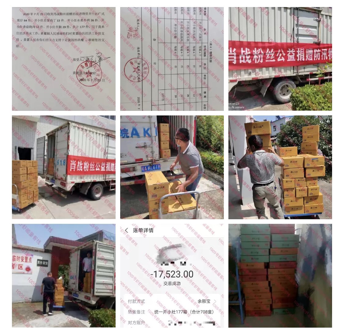 แฟนคลับเซียวจ้านร่วมกันบริจาคข้าวกล่องไคเสี่ยวจ้าวจำนวน 177 ลังให้กับรัฐบาลเขตฮว๋างลู่เมืองเฉาหูค่ะ