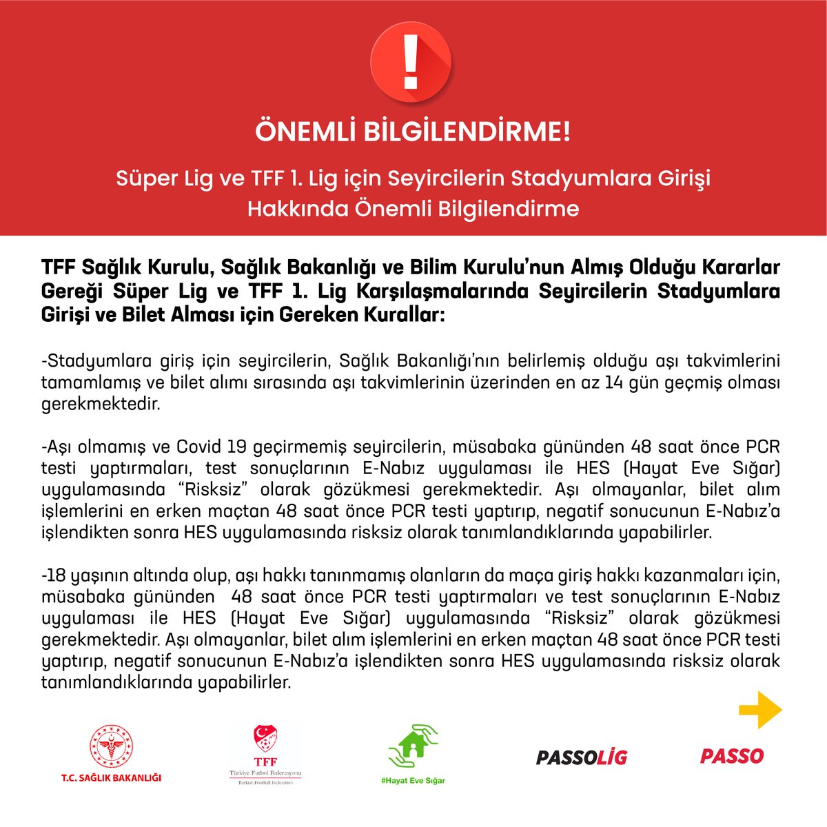 📣 Stadyumlara giriş hakkında önemli bilgilendirme.